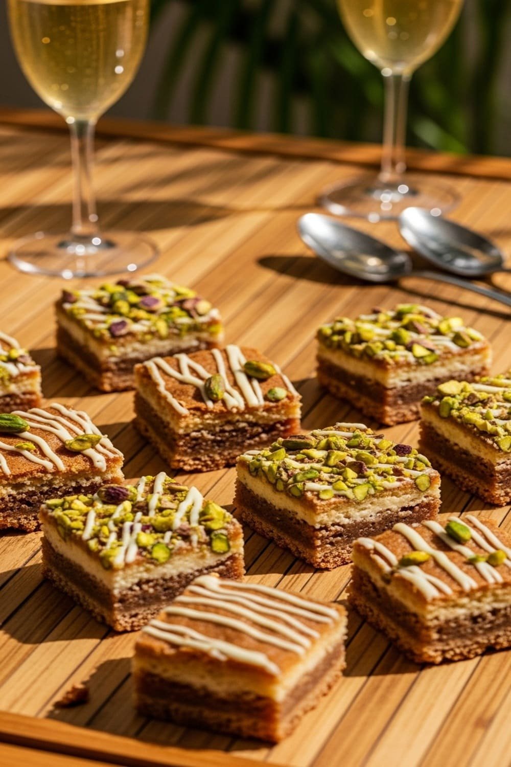 • Infunda a manteiga derretida com cascas de laranja orgânica raladas finamente por 10 minutos antes de misturar, coando para um cítrico sutil que realça o pistache sem dominar, inspirado em blondies mediterrâneos.