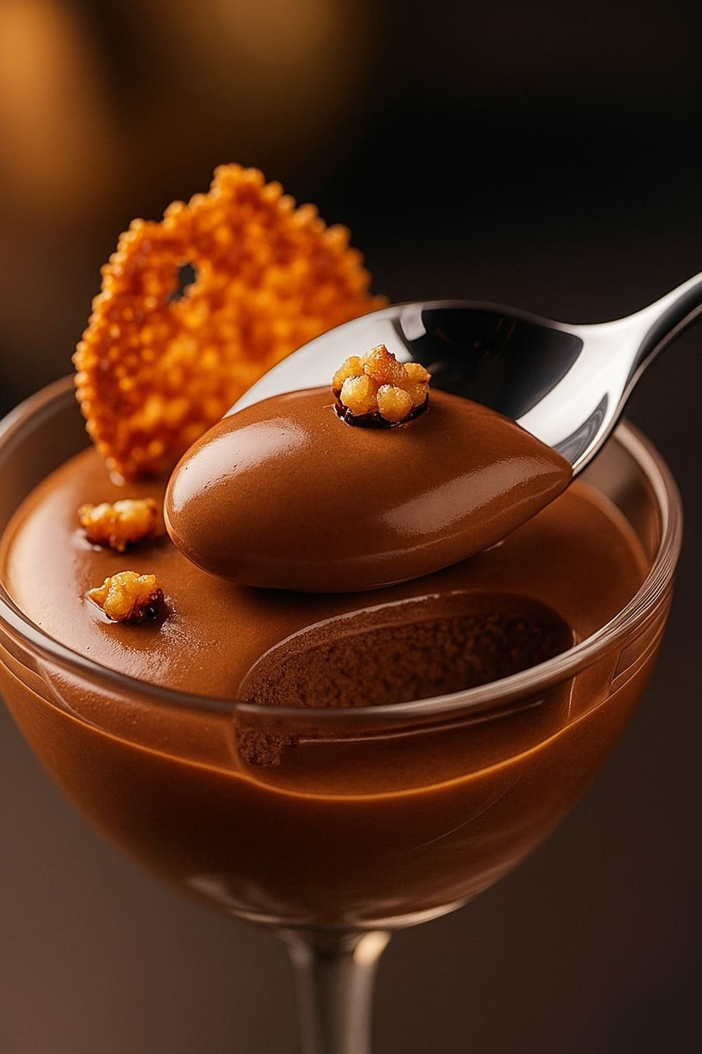 👨🍳 Versão Gourmet – “Mousse de Chocolate Amargo e Laranja com Crocante de Avelã Dourada”
