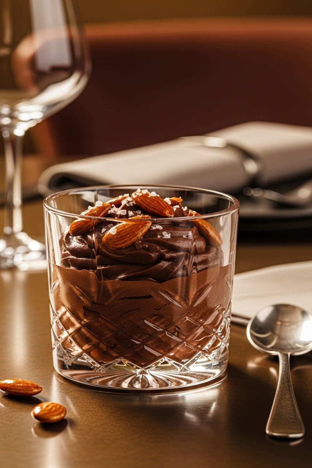 Mousse de Chocolate Belga com Crocante de Amêndoas Salgadas
