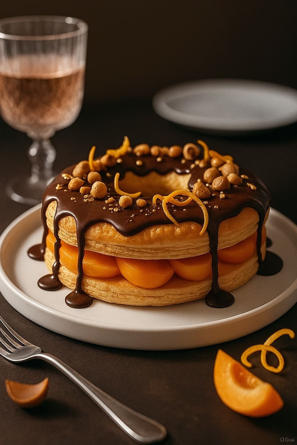👨🍳 Versão Gourmet – “Torta Folhada de Damasco, Avelã e Chocolate com Laranja Siciliana”