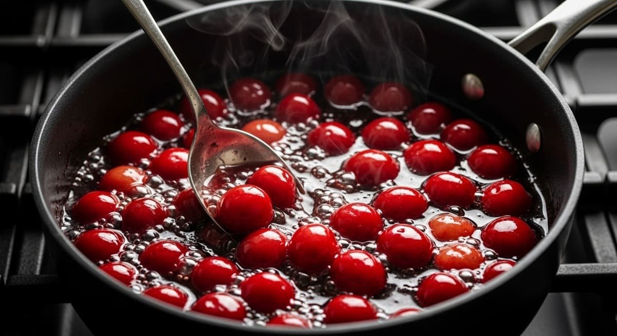 - Compota: Cozinhe cerejas, açúcar e Kirsch até amolecerem. Adicione o amido e cozinhe até engrossar. Deixe esfriar.
