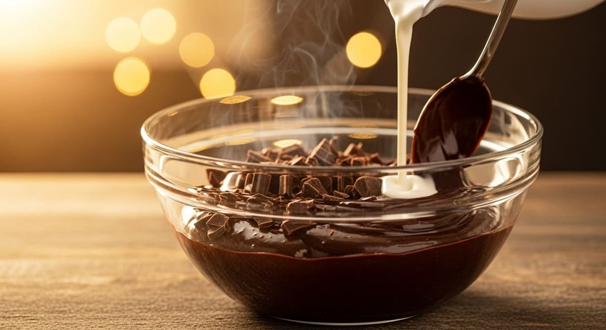- Ganache: Aqueça o creme de leite e despeje sobre o chocolate picado. Misture até derreter.